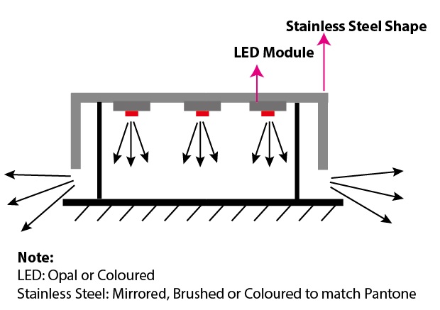 - Stainless steel in mirror finish, 3 layers design, LED Backlit