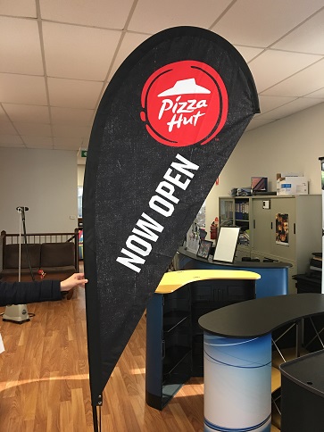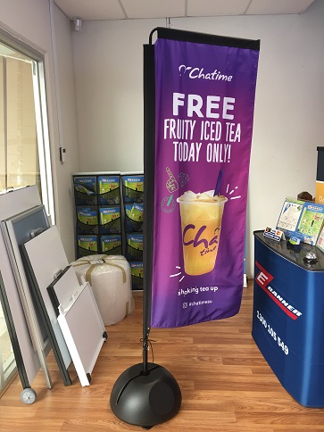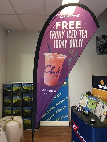 Teardrop flags/feather flags are perfect for outdoor shop signs.